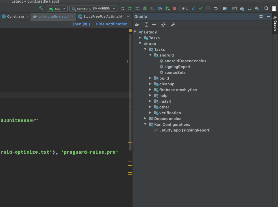 3. 지문인증서를 안드로이드 스튜디오에서 보기
