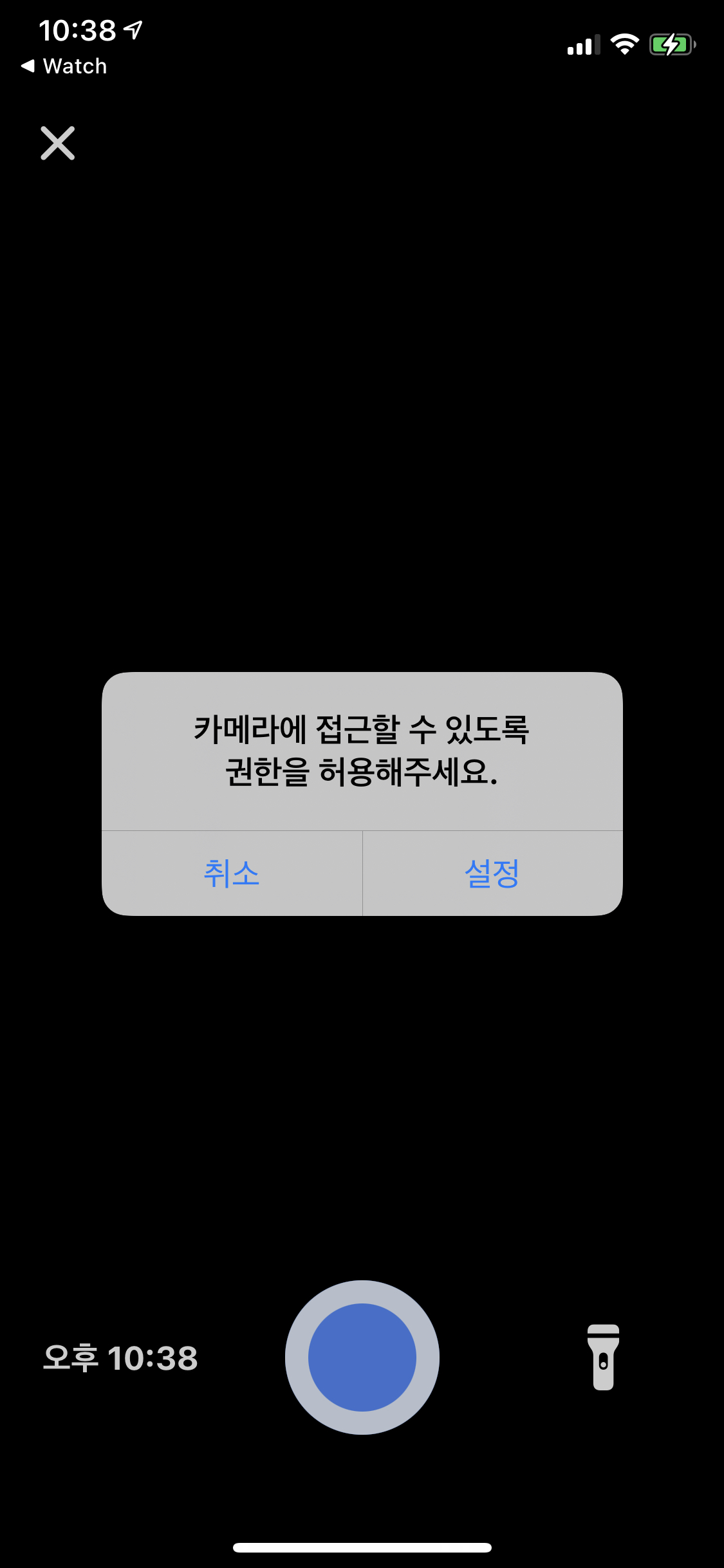 showAlert("카메라에 접근할 수 있도록 권한을 허용해주세요.", btn2: "설정") {