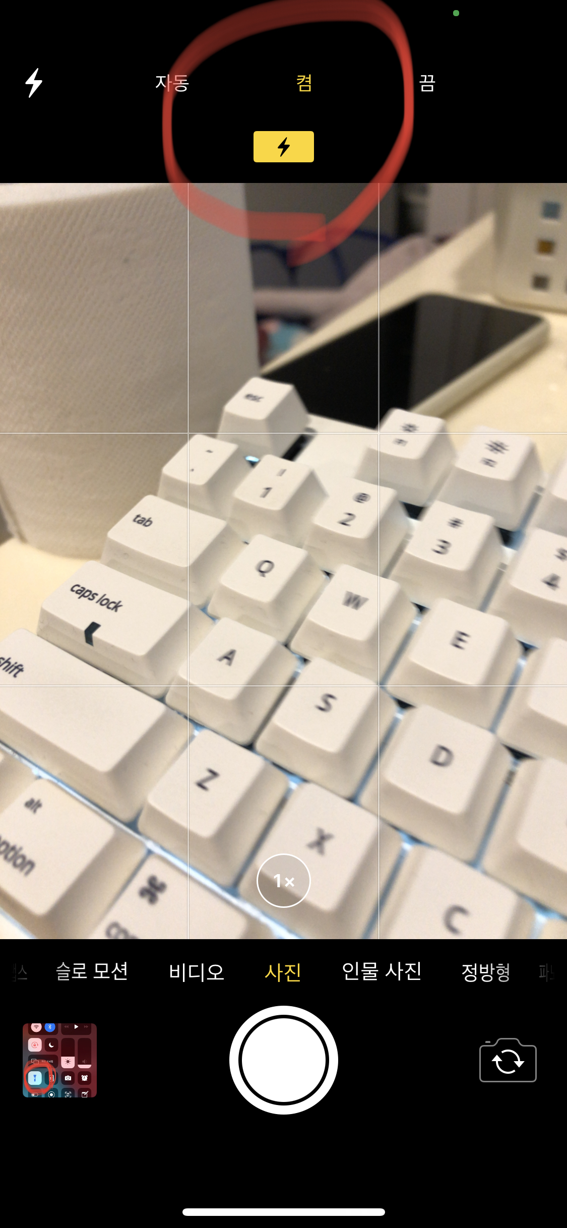 (기기의 플래시가 계속해서 켜져있는 상태입니다.)