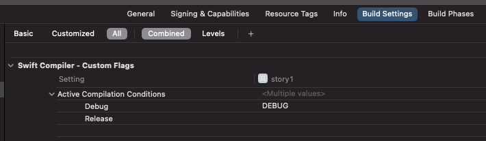 Xcode Build Settings -> Active Compliation Conditions 항목에서 세팅이 가능합니다.
