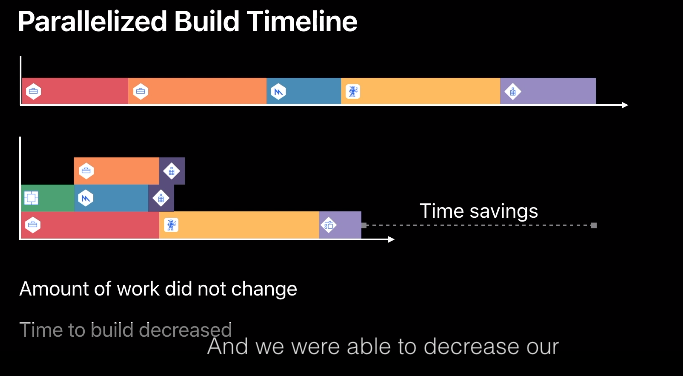 그래서 Xcode 빌드 시스템은 이것을 병렬처리할 수 있도록 개발되었다고 합니다. 아래와 같이요