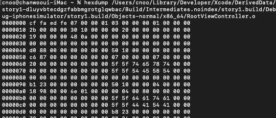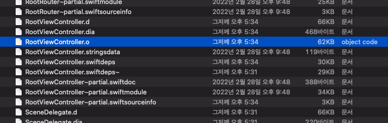 ~/Library/Developer/Xcode/DerivedData/{빌드한프로젝트명}/Build/intermediates.noindex/{프로젝트명}.build/Debug-iphonesimulator/{프로젝트명}.build/Objects-normal/x86_64