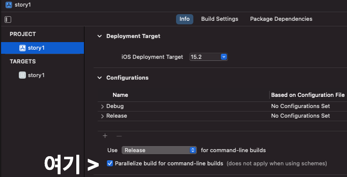 프로젝트 설정에 있네요. (커맨드 라인 툴로 빌드하는 것이 궁금하시면 여기를 방문해보세요!https://velog.io/@devapploper/Command-Line-Tool을-사용하여-Xcode-프로젝트를-빌드-및-테스트-하기)