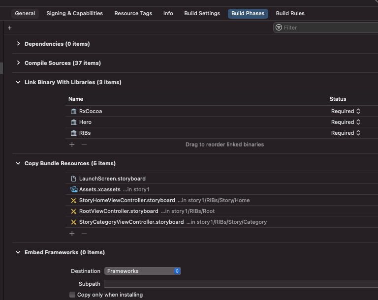 Xcode의 빌드는 크게 다섯 단계로 분류됩니다.